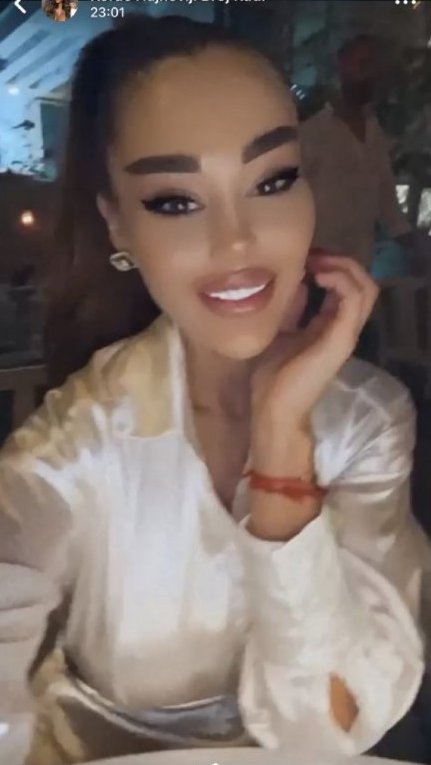 Bivša zadrugarka u društvu svoje jače polovine putuje po inostranstvu, posjećuje luksuzne restorane i kupuje brendirane stvari za sebe i bebu. Buduća mama se hrani zdravo, jede školjke, morske plodove i pije mineralnu vodu. U bijeloj svilenoj košulji i kosom vezanu u rep, buduća mama nije skidala osmijeh sa lica, a iza nje se vidi luksuz u kome uživa.