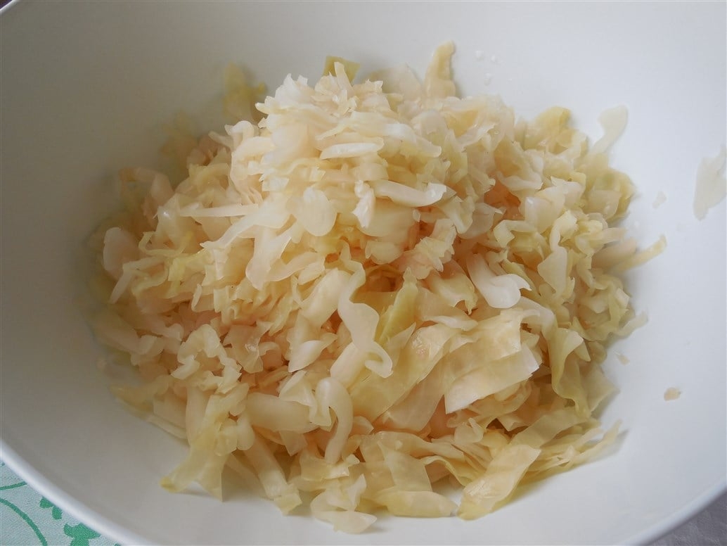 7. Ostatak kiselog kupusa narežite na trakice, ali odvojite dva lista koja će ići na vrh