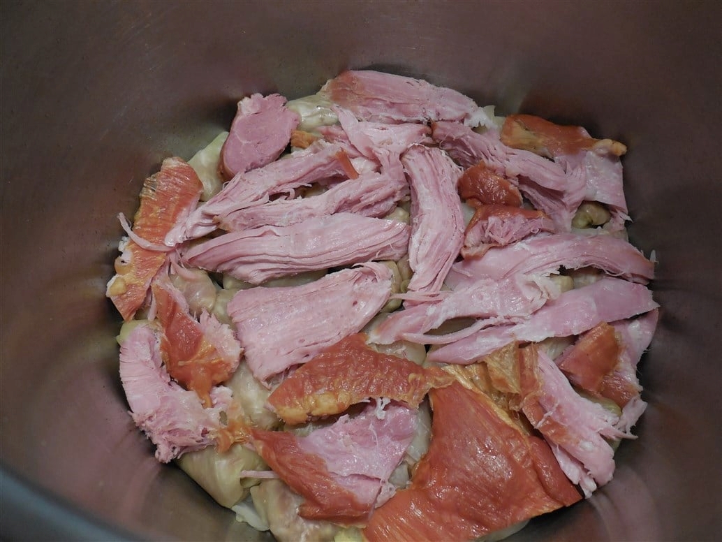 8. Stavite ih na dno lonca, složite sarme na njih pa dodajte suvo meso po želji